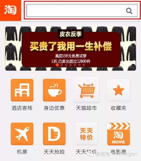 半仙:下面是手机淘宝首页展示。红色区域是手机淘宝搜索框。