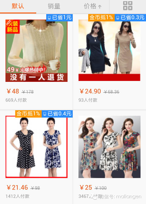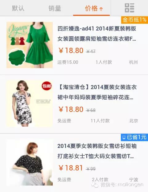 价格排序结构页面。其中淘金币和手机专享价排在前面哦。很对新店铺没有设置,是很大的损失哦。如何设置,会在接下课程为说明的。