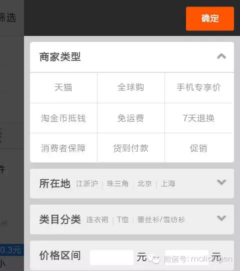 下面是条件筛选区域,卖家必须设置好宝贝属性,这样用户才能更精准找到你的宝贝哦。